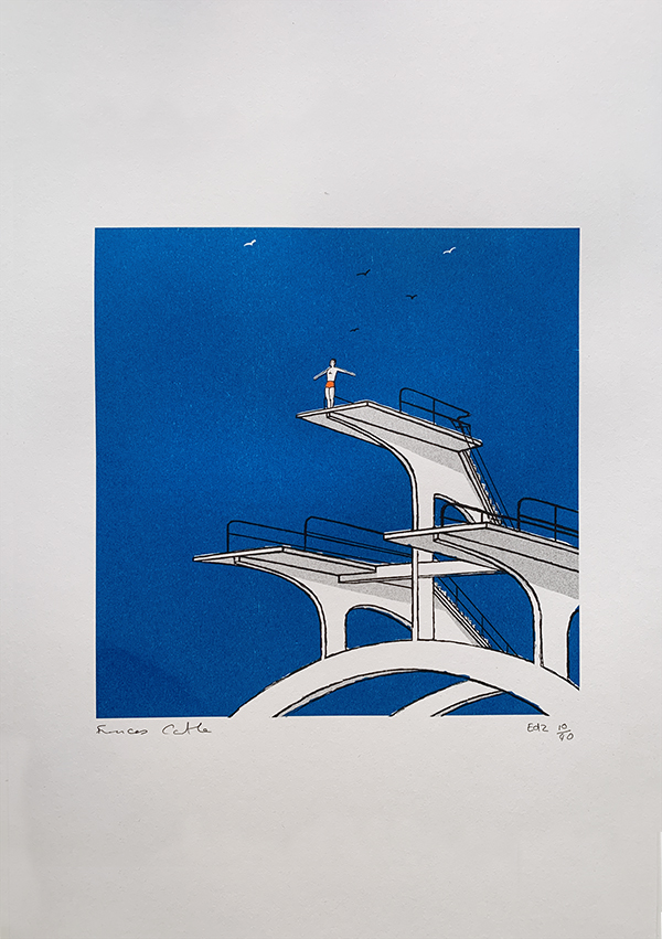 Darren Hayman 'Lido Diver' A3 Risograph Print.